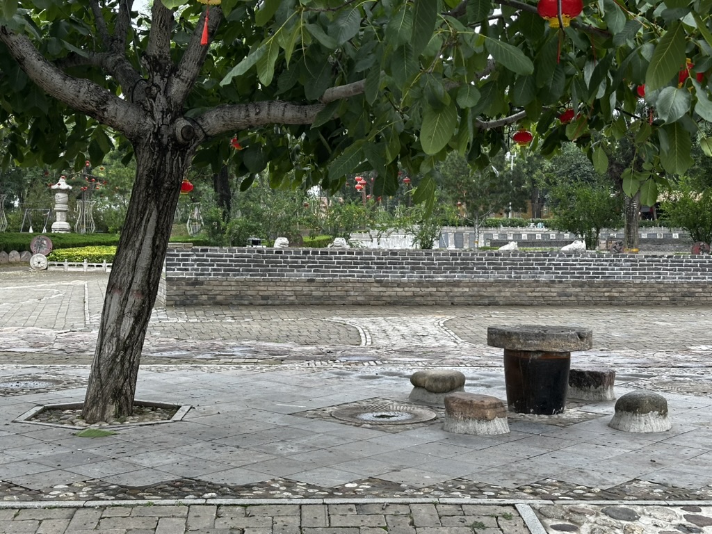 在景区内的地坑院一共十九个,每一个都展示地坑院的一角。从地上纵览全局,仿佛花园当中,又有些黛瓦点缀。但事实上,这些都不存在。这些围栏,叫做骑墙,在一个村里,至多几家有足够多的资本来砌,还远没有景区中的高。而花园更是不用去想的,一片茫茫的黄土才是其本色。